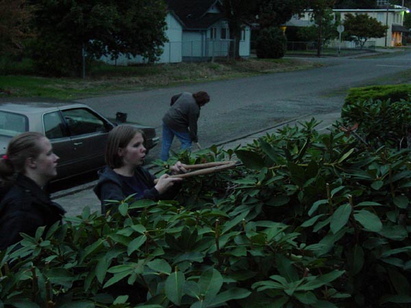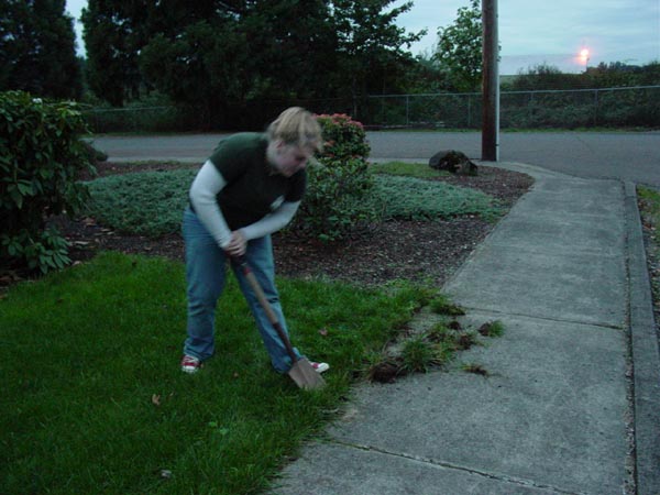 We trimmed the shrubbery and cut the over-growing grass off of the sidewalk. In attendance: Marietta, Grace, Charlotte, Brian, Cody, & Bill. Click the thumbnails for a larger view.