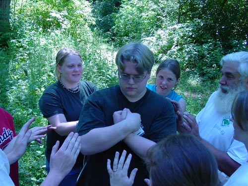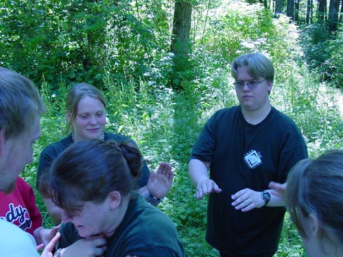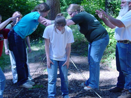 inside a circle of spotters. The spotters gently push you back.