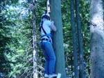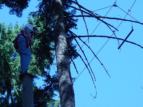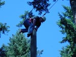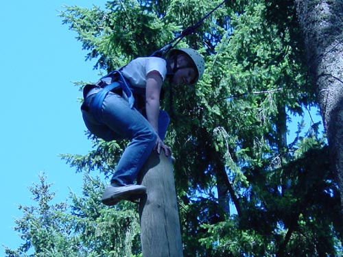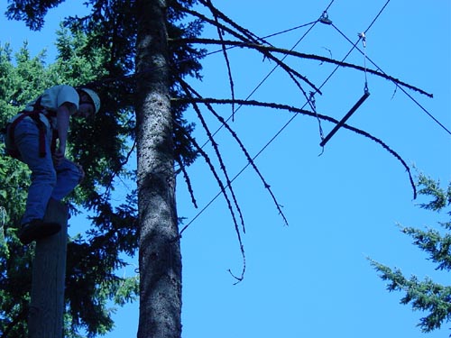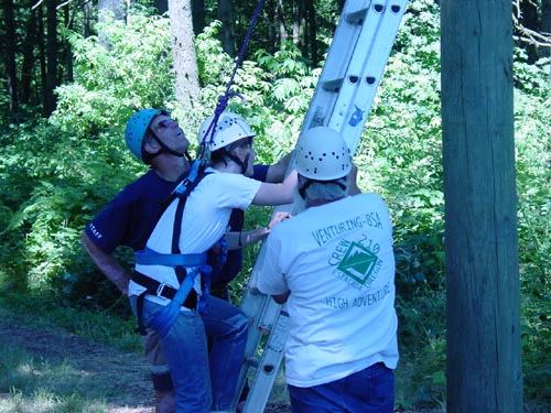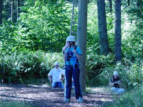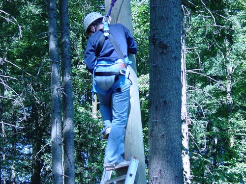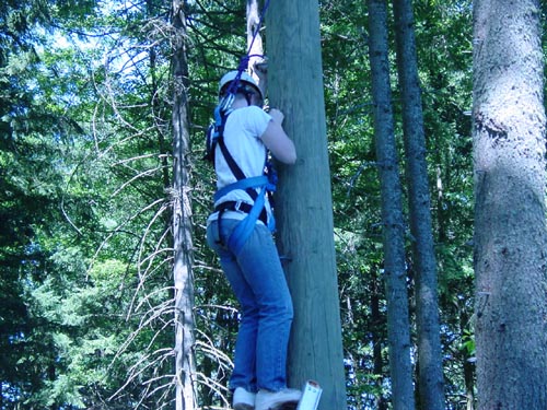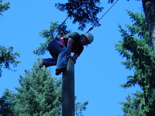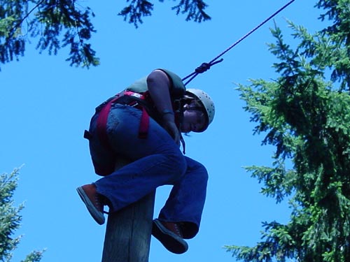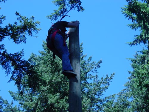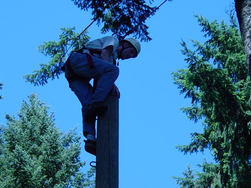 Climb up a 32-foot pole in a harness and jump for the