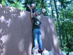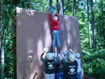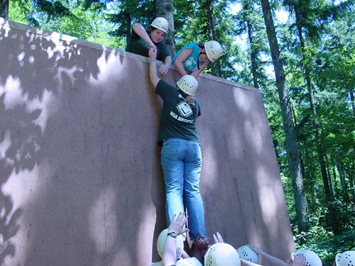 The object is to get everyone up the wall. Only two people